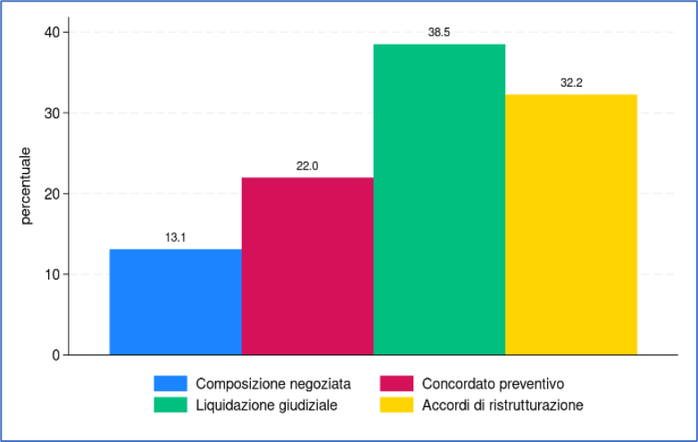 Peraltro, il più recente studio di Banca d’Italia di fine 2025 precisa che soltanto un quarto delle crisi aziendali che hanno prodotto la fuoriuscita dal mercato sfocia in una procedura concorsuale[12], mentre l’altra considerevole quota esita in soluzioni stragiudiziali o in azioni esecutive individuali.